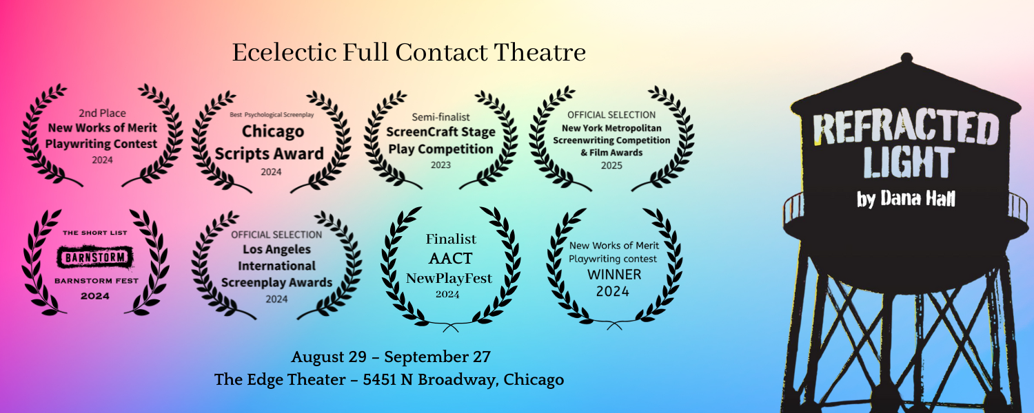 Dana Hall’s script, Refracted Light, will be having its world premiere at the Eclectic Full Contact Theatre in Chicago. A script which was developed and workshopped by EFCT for over a year. “Refracted Light” tackles sibling rivalry, parental expectation, generational mental health challenges, and the strength of a familial bond in one of the most honest, funny, and heartwarming shows you’ll ever see.” It runs August 29 – September 27 at The Edge Theater – 5451 N Broadway, Chicago. Tickets available here.
