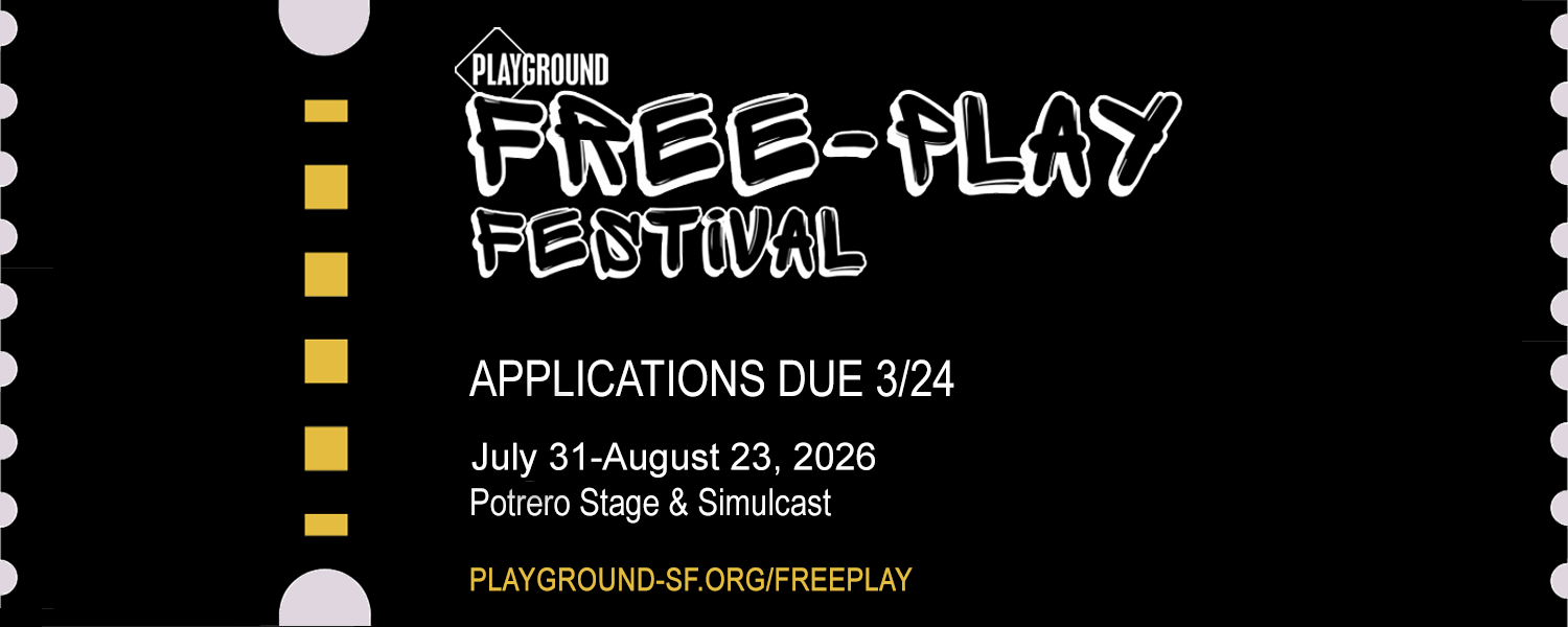 (SAN FRANCISCO) – Applications are now being accepted for PlayGround’s fifth annual FREE-PLAY FESTIVAL, July 31-August 23, at Potrero Stage and simulcast. This four-week “fringe style” new works festival will feature up to 20 productions and 60 performances by talented theatre artists from across the country including PlayGround artists based in the Bay Area, Los Angeles, New York and Chicago.